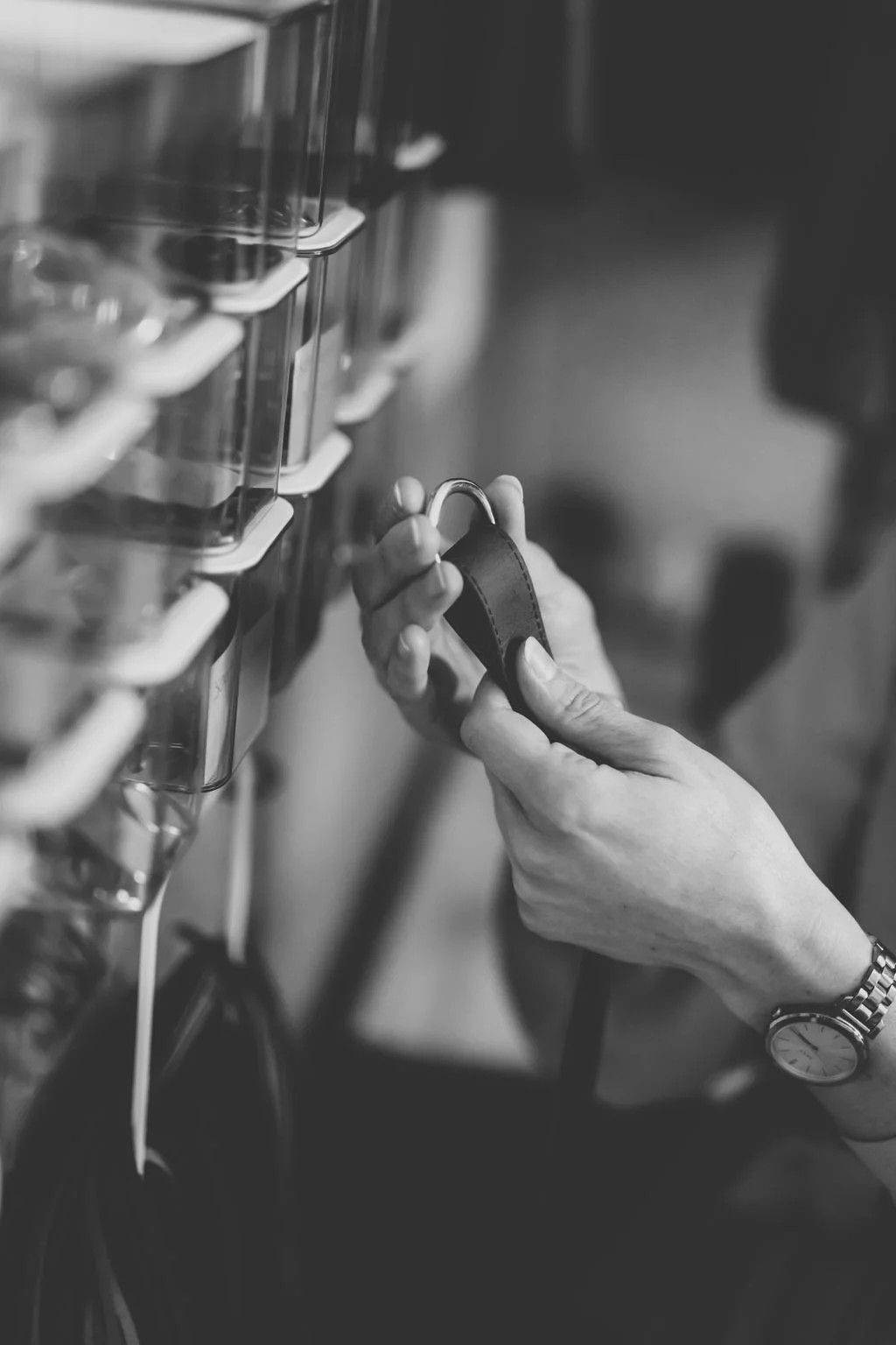 De fournituren worden met zorg door Dorien gekozen, passend bij de kleur leer. In het geval van deze bijzondere bronzen leersoort heeft ze gekozen voor de kleur oud-goud wat de warmte van de gloed accentueert.